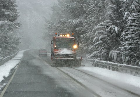 Πυκνό χιόνι πέφτει στη Ράχη Τυμφρηστού, και η κυκλοφορία γίνεται μόνο με αλυσίδες, από το 60-65 χλμ, Λαμίας- Καρπενησίου, μέχρι δηλ. τη σήραγγα, πριν το Καρπενήσι.